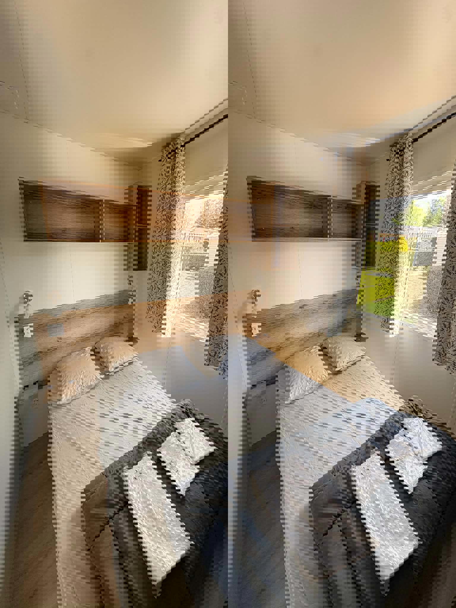 For your stay with family or friends, we offer this 30 m² mobile home designed for four people with two bedrooms, all modern comforts and a semi-covered terrace. Don’t hesitate to join us at Camping Le Clos de Balleroy, in Calvados, near Bayeux.