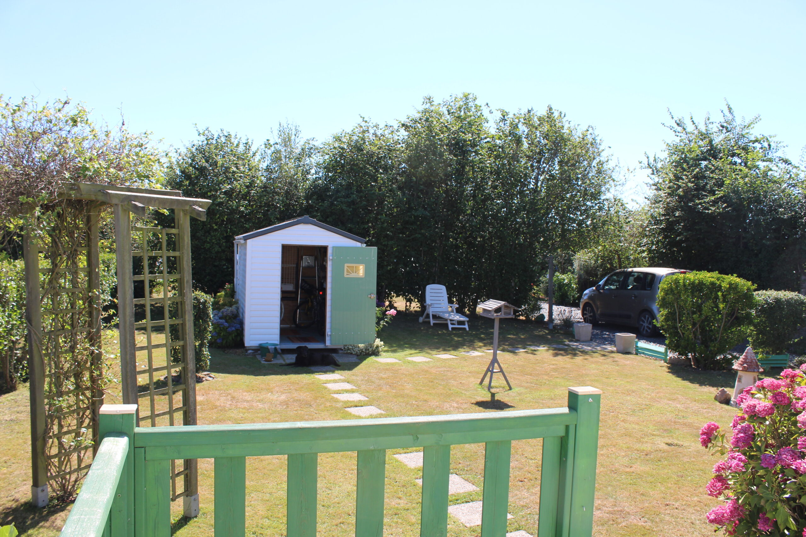 A l’extérieur : Grand jardin de 330m2, terrasse en bois semi-couverte, salon de jardin, parasol, chaise longue; séchoir à linge, barbecue sur demande.