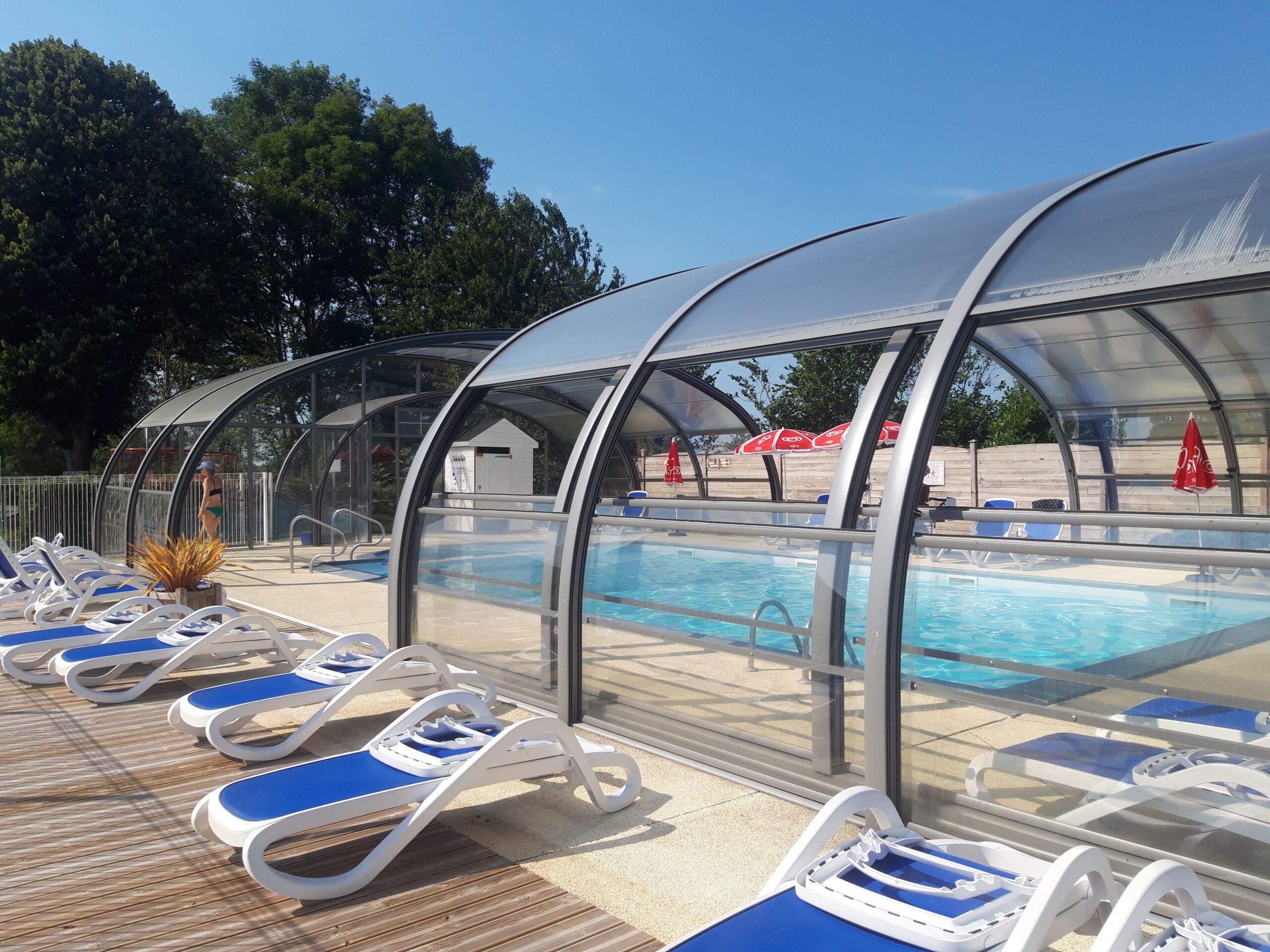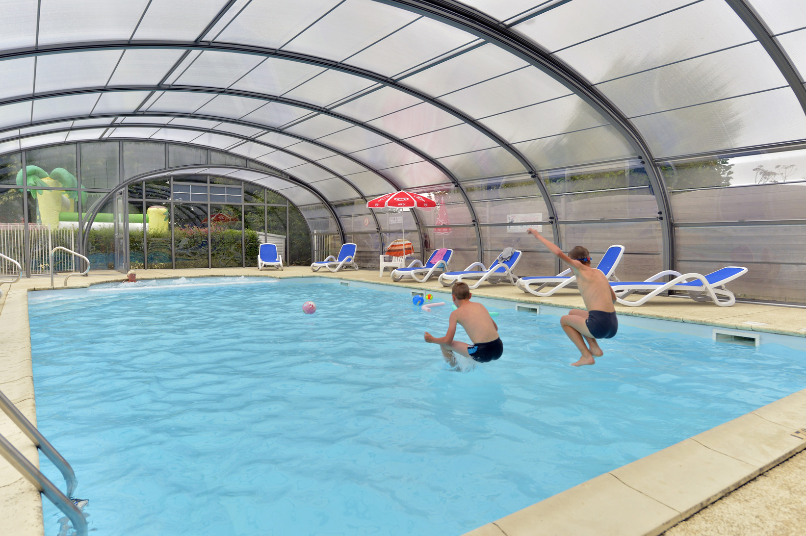 Profitez d’un séjour dans le Calvados dans notre camping 3 étoiles avec piscine couverte et chauffée à 29°C. Grâce à son abri télescopique, la baignade est possible toute la saison, avec un espace enfants sécurisé.